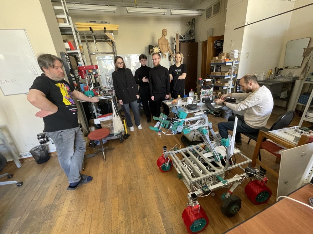 Студенты кафедры физики низких темеператур и сверхпроводимости познакомились с разработками лаборатории: модель лунохода, шагающий робот-собака и другими